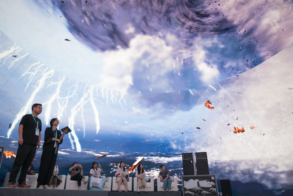文化兴则国家兴,文化强则民族强 当下的中国 文化认同不断深化 文化自信不断增强 文化建设不断深入 精神文明建设高质量发展 也为经济社会发展注入充沛动能 文明立世,文化兴邦 在习近平文化思想的引领下 东方古国,勇毅前行 走出了一条物质文明和精神文明 相协调的现代化新路 以文塑旅、以旅彰文 华夏大地,文旅深度融合发展 催生旅游新场景、打造经济新亮点 塑造城乡新形象、构筑精神新家园 展现着中国式现代化的新气象 2025年2月25日,游客们在哈尔滨冰雪大世界游玩(无人机照片)。近年来,黑龙江省大力发展特色文化旅游,凭借冰雪资源优势火爆出圈,冰雪运动、冰雪文化、冰雪装备、冰雪旅游等“冰雪+”产业迎来发展高峰。冰雪文化和冰雪经济正成为高质量发展的新动能和对外开放的新纽带,“冷”资源释放了“热”活力。 2025年8月23日,村民们在贵州“村超”球场演唱侗族大歌。当日,2025年首届“村超”全国赛总决赛在贵州榕江县“村超”球场举行。赛事期间同时举办丰富多彩的民族歌舞展演、无人机表演、大型烟花秀,吸引数万观众现场观赛。近年来,贵州“村超”“村BA”等草根赛事持续升温,巧妙融合体育竞技、民族文化与文旅消费,打造“体育+”模式,撬动乡村流量与经济增量,赋能乡村振兴。 2024年6月4日,游客在新疆阿勒泰地区哈巴河县骑马游玩。电视剧《我的阿勒泰》播出后,新疆阿勒泰地区迎来客流高峰,“张凤侠的小卖部”“巴太树”“彩虹布拉克”等剧中地点成为热门旅游打卡地。这场“边城”与“热剧”双向奔赴的文旅盛宴,为当地经济发展带来新的增长点。2024年5月,当地接待游客415.03万人次,同比增长60.81%;实现旅游收入36.53亿元,同比增长88.25%。 2025年10月1日,游人在江苏省盱眙县第一山历史文化街区挑选手工艺品。国庆、中秋双节期间,盱眙县推出部分景区免门票、发放消费券等惠民措施,举办丰富多彩的文旅活动,在让市民和游客度过欢乐祥和节日的同时,有效释放假日经济活力。 2025年8月22日,游客在位于厦门东渡邮轮母港片区的闽南文化主题景区“屿见闽南·时光幻境”游玩。近年来,从闽南文化主题景区“屿见闽南·时光幻境”,到百年老街中山路步行街,再到风景名胜鼓浪屿的“甜蜜经济”,厦门不断创新消费场景,扩大文旅内需。 2025年7月11日,游客在位于江西省上饶市望仙乡的望仙谷景区游览。近年来,望仙谷景区因其独特的“仙侠世界”景观火爆出圈,吸引大批游客来此观光。景区2024年接待游客310万人次,全年实现旅游收入5.28亿元,同时显著带动周边乡镇的食、住、行、娱等行业发展。望仙谷景区的建设运营促进了村民返乡和能人进乡,提供直接就业岗位超过2000个,带动周边就业3万余人。 2025年7月9日,游客在贵州省平塘县克度“天文小镇”通过望远镜观测星空。近年来,随着旅游设施逐渐完善,距离“中国天眼”仅8公里的克度“天文小镇”通过“科普+文旅”发展模式,带动村民就业创业、增收致富。2025年1月至6月,“中国天眼”景区共接待游客约38万人次,总收入2496万余元。 老手艺遇见新创意 旧符号碰撞新元素 特色文化产业在创新中传承 在跨界中生长 中华优秀传统文化 在新时代焕发蓬勃生机 为经济社会发展注入动能 2025年7月13日,国家级非遗传统粉彩瓷制作技艺代表性传承人傅长敏(中)等陶瓷手工技艺传承人在陶阳里历史文化街区进行现场创作。陶阳里历史文化街区地处景德镇城市中心地带,古有“陶阳十三里,烟火十万家”的说法。近年来,当地严格遵循保护第一、修旧如旧的要求,在留住历史文脉和城市记忆的同时,实现老城区改造向文化创意产业、旅游服务业的转型,成功入选首批城市更新典型案例。如今,陶阳里历史文化街区已经成为游客们的热门打卡地。 2025年5月28日,河北省武强县一家乐器生产企业的工人在制作尤克里里。武强县乐器产业历经30余年的发展,形成拥有超过150家企业、从业人员万余人的产业集群,产品覆盖100多个品种、400多种规格。近年来,武强县依托乐器文化产业资源,打造集乐器加工、乐器体验、音乐展演和休闲度假等业态为一体的周窝音乐小镇,同时创新“乐器+”乡村振兴模式,持续增强乐器产业的富民强县作用。2024年武强县乐器产业实现营收23.8亿元,旅游收入超10亿元。 2025年9月20日,云南省普洱市南屏镇南岛河村“美丽星村·有风咖谷”咖啡体验中心的工作人员在烘焙咖啡豆。因普洱茶享誉海内外的普洱市依托丰富的咖啡资源和独特的咖啡文化,积极推进咖啡与旅游的深度融合,打造了咖啡庄园、咖啡主题街区和咖啡文化集市等多元体验场景,受到游客青睐。近年来,云南凭借得天独厚的咖啡种植优势和文旅资源,通过科技赋能、精品化转型、业态创新、集群发展和文化注入,逐步实现“咖啡+文旅”产业链各环节价值提升。 2024年5月19日,游客在西安长安十二时辰景区观看表演《霓裳羽衣舞》。“长安十二时辰”主题街区将唐朝文化与现代旅游相结合,让游客仿佛置身于千年前的长安城。近年来,西安积极推进产业升级和文旅融合,以中华优秀传统文化创新创造活力助推经济社会高质量发展,如大唐不夜城一样火爆“出圈”的文旅项目层出不穷。 2024年12月3日,学生们在广西梧州市苍梧县六堡镇塘平小学学习制作六堡茶。广西六堡茶已有1500多年的历史,其制